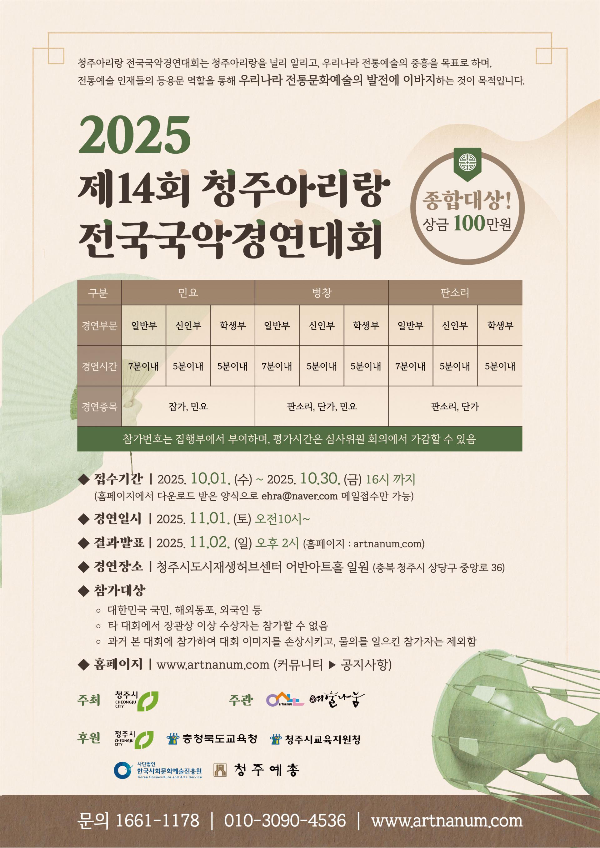 2025년 제14회 청주아리랑 전국국악경연대회 (종합대상100만원)